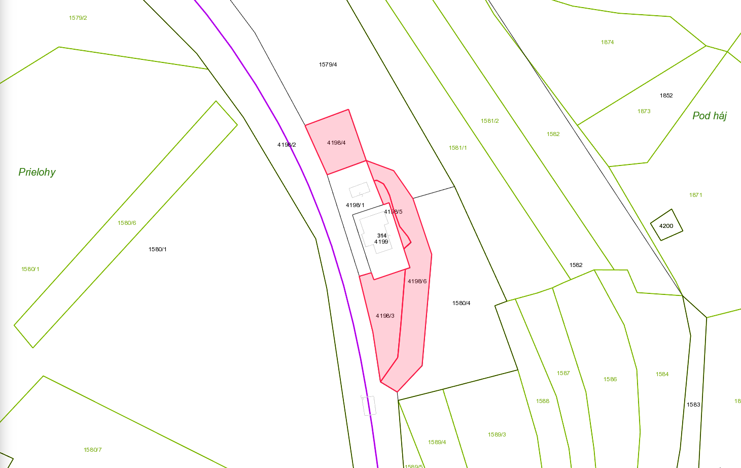Pozemky parc.č. 4198/3, 5 a 6 sú nezastavané, vznikli umelo ako násyp pri výstavbe stavby na pozemku parc.č. 4199 formou terénnych úprav, ktoré stabilizujú pozemok proti zosuvu pôdy, na ktorom je postavená stavba súp.č. 314. Využívanie nehnuteľností je obmedzené, majú sklon miestami až 45 stupňov a nemožno ich využiť pre výstavbu iných nadzemných objektov.