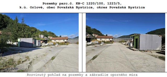 ŽSR ponúkajú na predaj prostredníctvom ponukového konania pozemky parc.č. 1220/100 a 1223/5 nachádzajúce sa v katastrálnom území Orlové (mestská časť Považskej Bystrice). Pozemky sa nachádzajú v ochrannom pásme dráhy na Robotníckej ulici, v areáli súkromnej spoločnosti. Pozemok parc.č. 1223/5 bude pri odpredaji zaťažený vecným bremenom na inžinierske siete (STL D90 plynovod) a práva prístupu k nim.