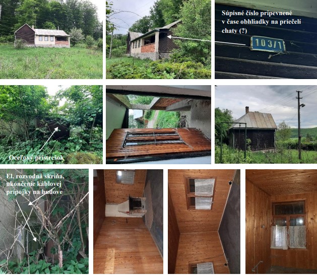 Stavba pozostáva zo spoločenskej miestnosti s kozubom v rohu miestnosti, dvoch izieb a príslušenstva (vstupná predsieň, kuchyňa a hygienické zariadenie). Vstup do budovy je z terasy a predsiene. Stavba je prízemný jednopodlažný objekt bez podpivničenia, studňa a žumpa je v zlom technickom stave a je nutná ich revízia a overenie spôsobilosti pre ďalšiu prevádzku. Objekt je napojený na elektrickú energiu z verejnej distribučnej siete vzduchom a na úžitkový vodovod zo studne na parcele E-KN č. 2502/6 (parcela je v súkromnom vlastníctve). Objekt nie je napojený na internet a nemá zavedenú telefónnu prípojku. Pozemky parc.č. 1684/163, 1686 a 2117/8 tvoria príslušenstvo rekreačnej chaty a pozemok parc.č. 1922/5 tvorí spevnená komunikácia, slúžiaca ako verejná prístupová komunikácia pre prístup k ostatným rekreačným objektom v dotknutom území.
