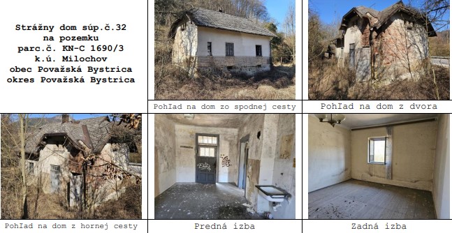 stavba súpisné číslo 32 na pozemku registra C KN parc.č. 1690/3, popis stavby strážny dom, zapísaná na LV č. 682 v podiele 1/1 pre k.ú. MILOCHOV