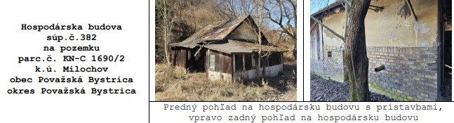 stavba súpisné číslo 382 na pozemku registra C KN parc.č. 1690/2, popis stavby hospodárska budova, zapísaná na LV č. 682 v podiele 1/1 pre k.ú. MILOCHOV