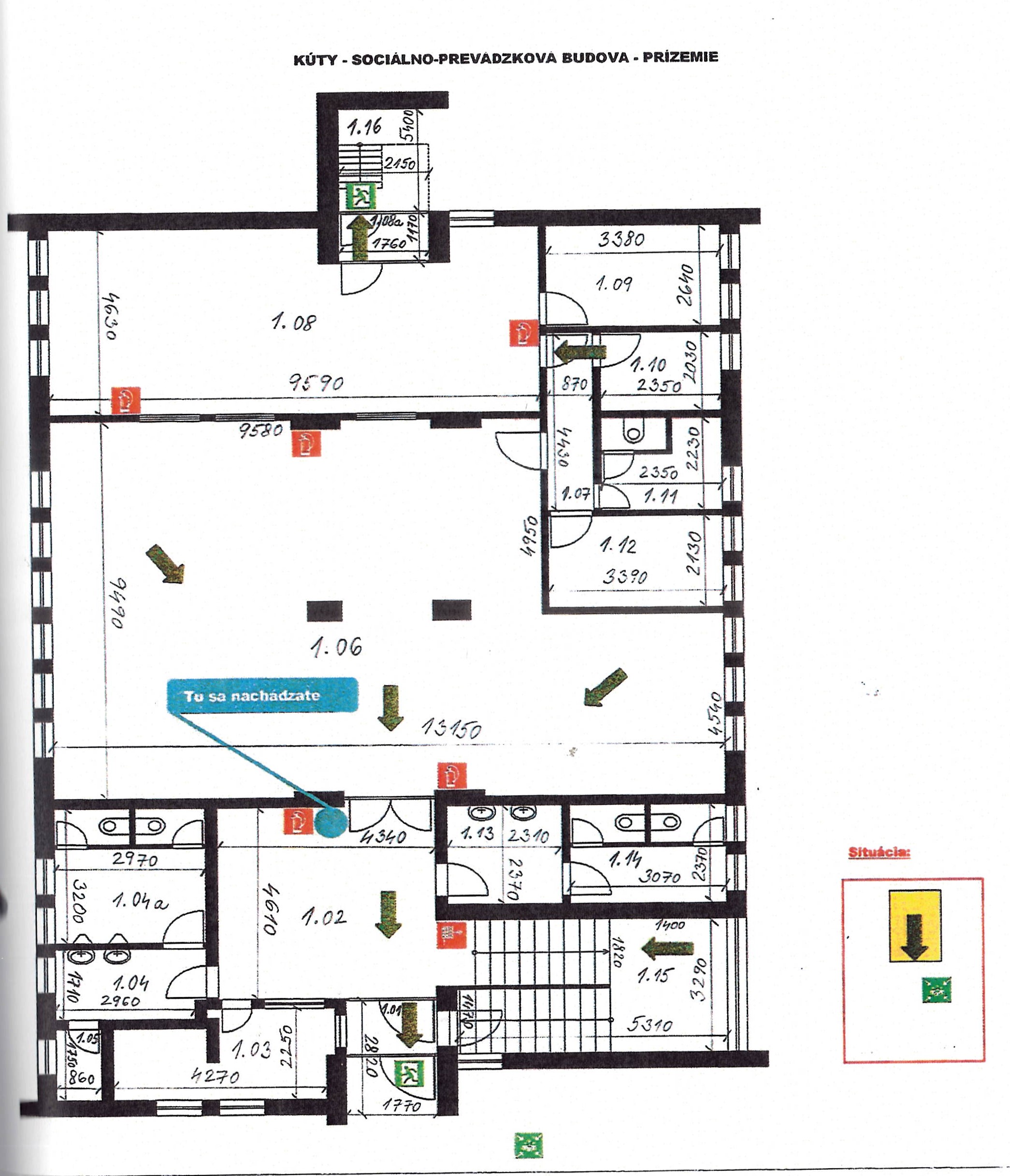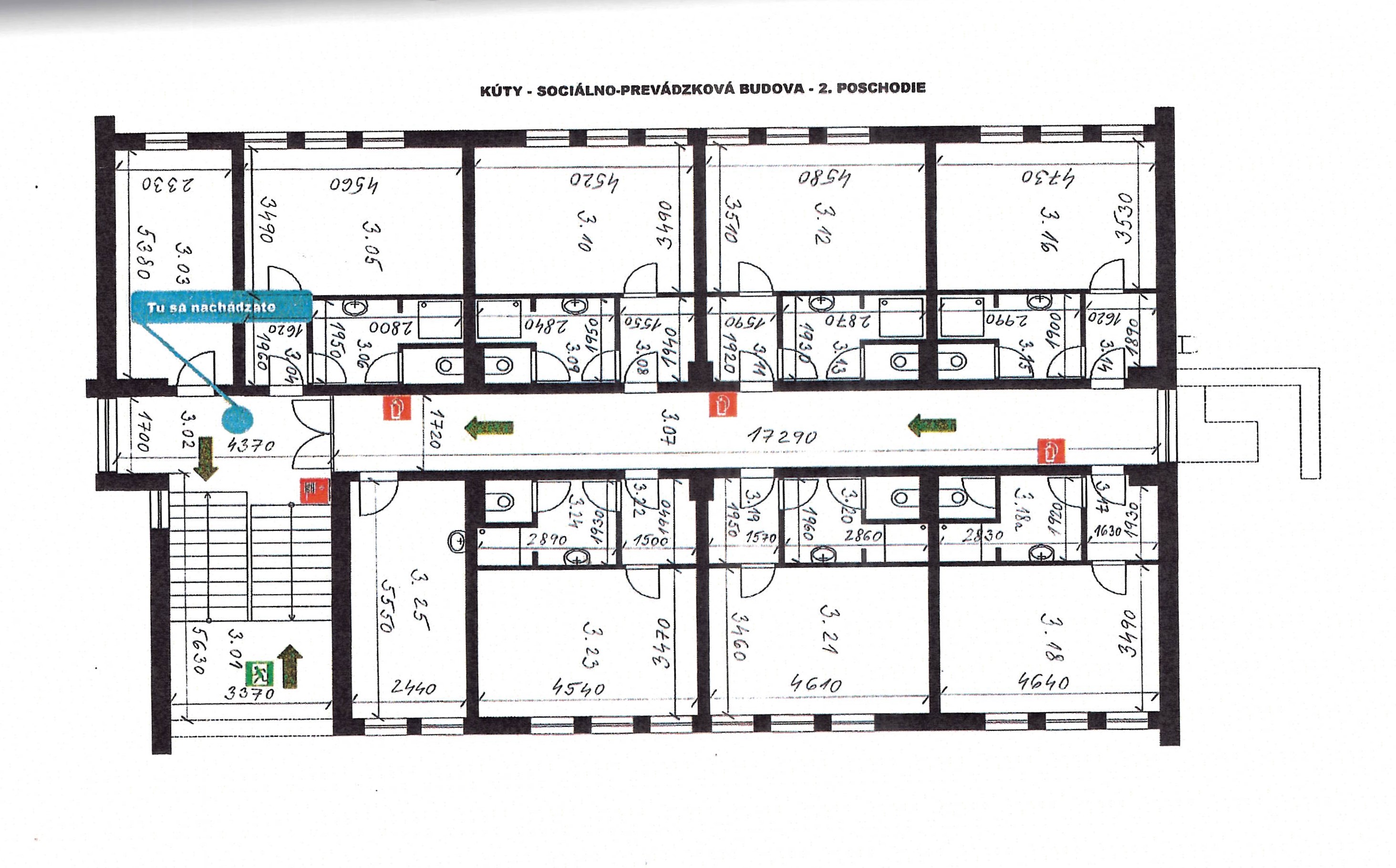 Stavba s 3 nadzemnými podlažiami z r. 1993 má na 1. nadz. podlaží vstupné a komunikačné priestory, jedáleň so zázemím (sklady, hygien. zariadenia, kancelária, rampa). Na 2. N. P. sa nachádzajú ubytovacie priestory (pôv. miestnosti s admin. využitím - kancelárie so spoločným soc. zariadením na podlaží) zoskupené v 2 traktoch so vstupmi zo stredovej chodby, a na 3. N.P. sú taktiež v 2 traktoch situované izby pre ubytovanie s vlastným hygienickým zázemím (sprcha, WC) a vstupmi z chodby, s dennou miestnosťou s kuchynkou, priestormi pre chyžnú a upratovačku a komunikačné priestory. Konštrukčne ide o kombináciu prefabrikovaných vodorovných konštrukcií (stropných panelov), uložených na nosníkoch železobetónového skeletu a výplňového, obojstranne omietnutého muriva, založeného na plošných betónových konštrukciách. Objekt má všetky inštalácie (voda, kanalizácia, elektrické vedenia, slaboprúdové vedenia), štandardné vybavenie, ústredné vykurovanie, ktoré je zásobované z plynovej kotolne (umiestnenej mimo objekt), obvodové konštrukcie nie sú dodatočne zateplené.