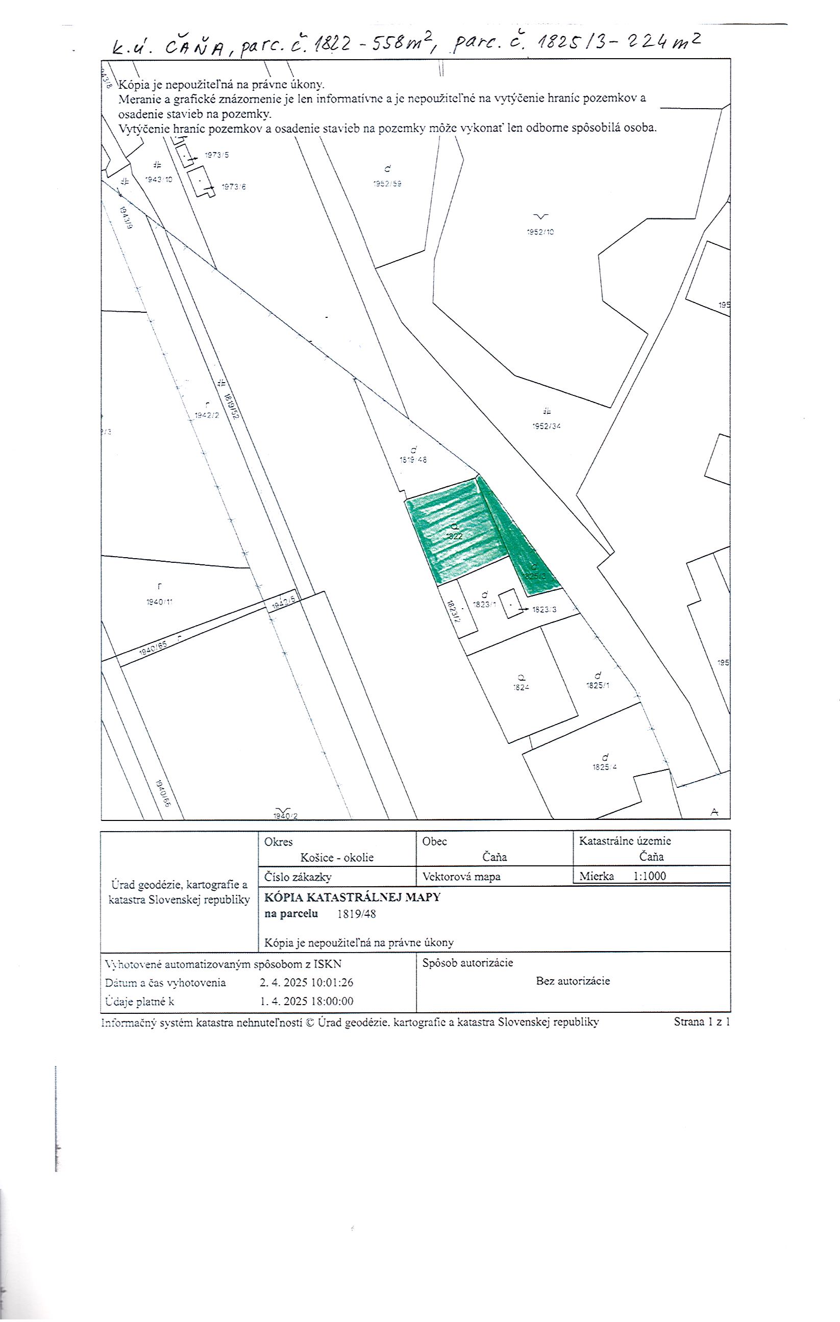 pozemok registra C KN parc.č. 1822 o výmere 558 m2, druh pozemku záhrada, zapísaný na LV č. 932 pre k.ú. Čaňa
